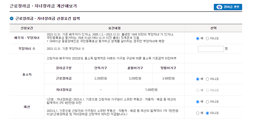 근로장려금, 자녀장려금 신청자격