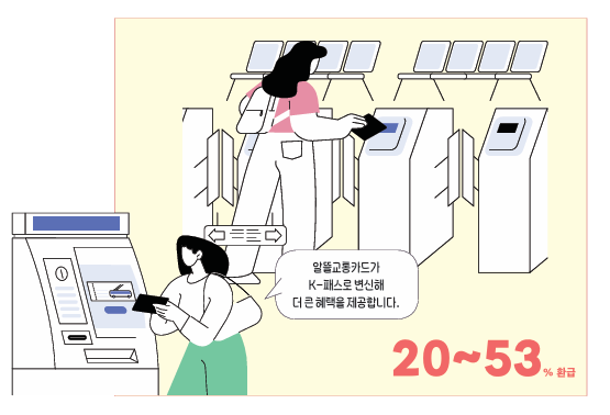 - 알뜰교통카드’ 기 이용자: 회원 전환 절차를 거치면 기존에 사용하던 교통 카드로 K-패스 혜택을 제공받을 수 있음